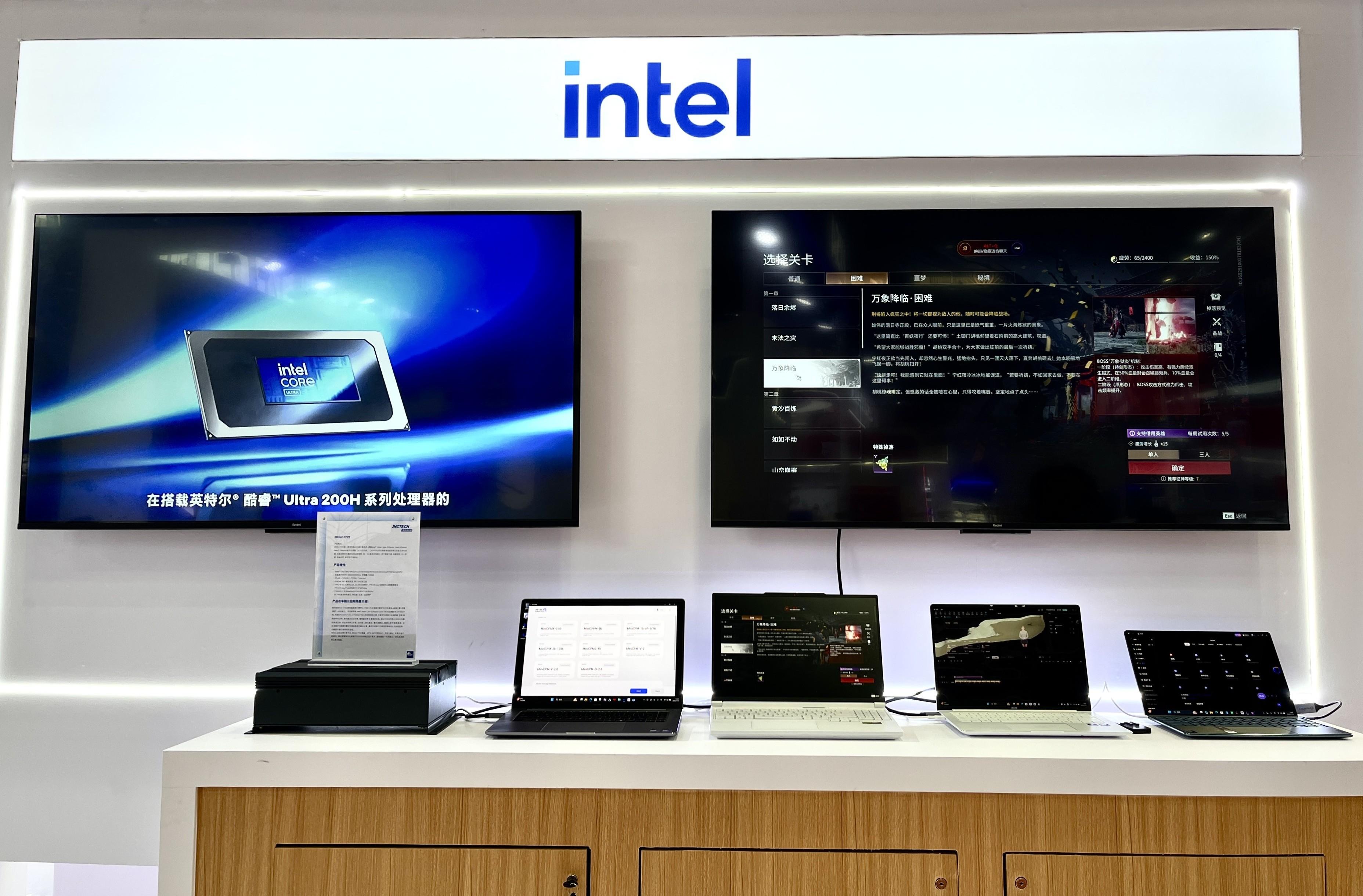 展台上亮相的AI高静游戏本——机械革命极光X Pro吸引了游戏玩家的注意,其搭载的基于英特尔XPU的AI游戏助手,为玩家提供全程攻略指导与情绪陪伴,打造出更具沉浸感与互动性的游戏体验。