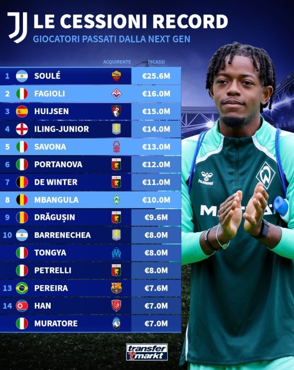 附尤文青训卖人榜: